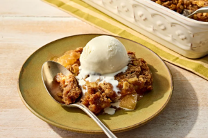 A box of spiced cake mix with some oats for added texture lend this dessert that fully-from-scratch flavor. Served warm with a scoop of ice cream, this dessert hits all those warm and cozy notes you want from homemade pie—er, cake.